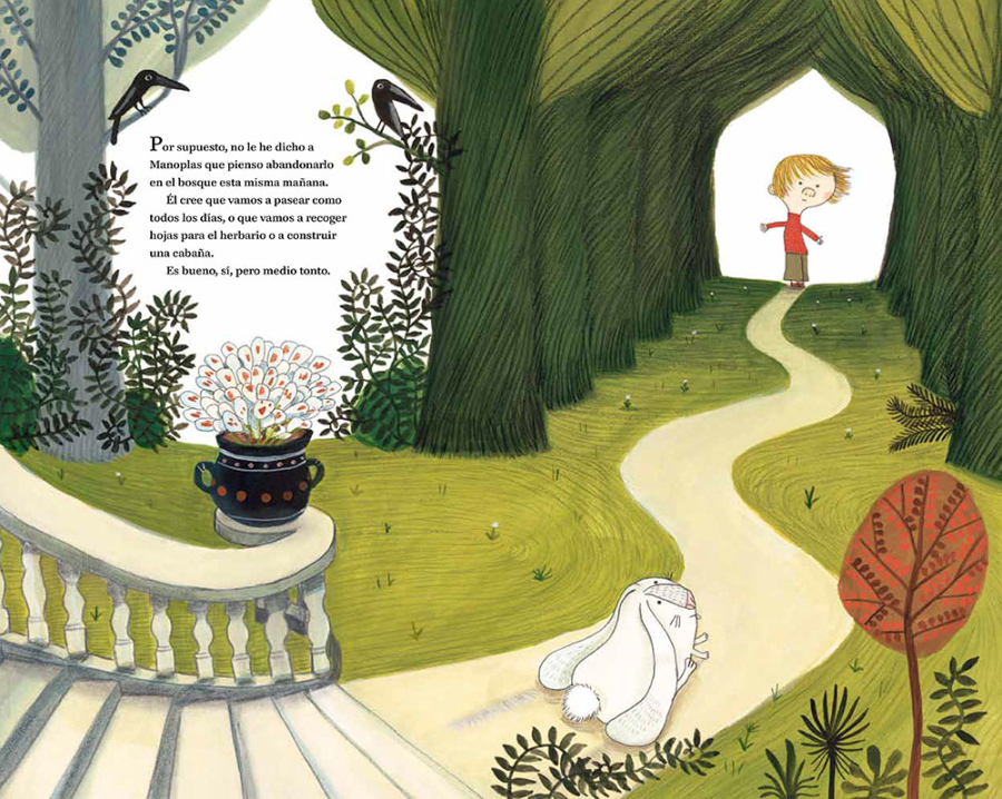Manoplas es un conejo bueno, pero bobo, lento y un desastre como compañero de juegos. Su dueño decide librarse de él dejándolo en el bosque. Pero no será fácil deshacerse de un amigo como Manoplas. Tierno, fresco, para reflexionar… ¡Un libro imposible de abandonar!
