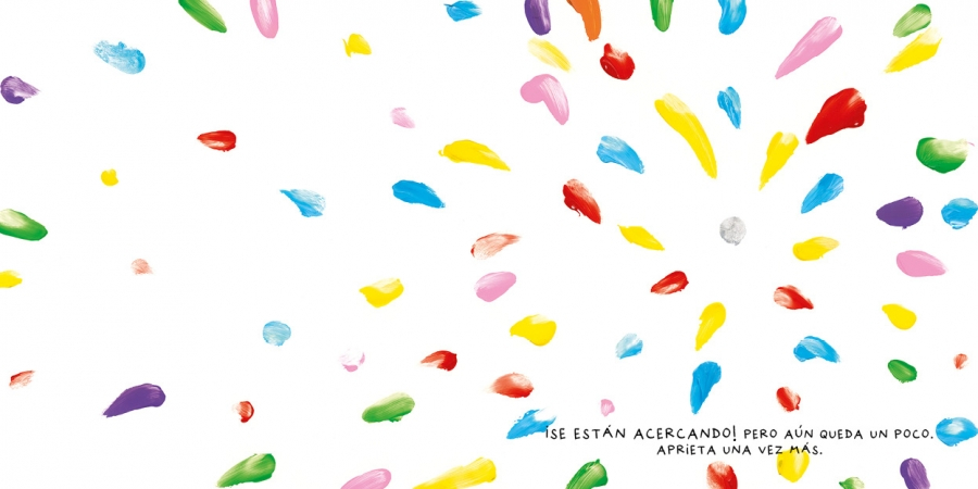 Un punto gris da la señal de partida a un montón de juegos de colores. ¿Qué pasa si se aprieta ese punto? ¿Y si apoyamos la mano sobre un montón de puntos de colores? ¿O si mezclamos el rojo y el azul? ¿Y si el libro se agita, se inclina, se cierra y se abre? ¡Magia! Eso es lo que pasa…