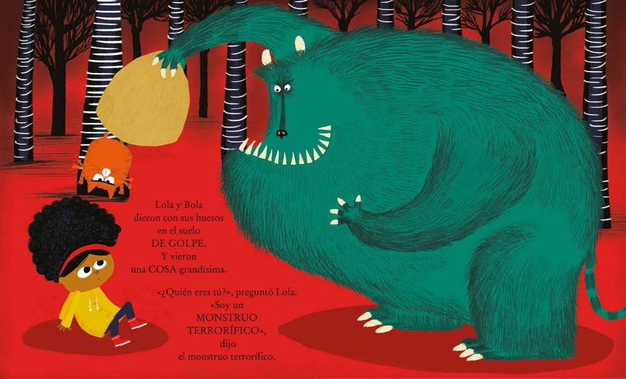 Lola y su gato Bola salieron a pasear por el bosque. Saludaron al zorro, al erizo, a los ratones y a los conejitos hasta que apareció un monstruo terrorífico dispuesto a cocinar una sopa con todos ellos.