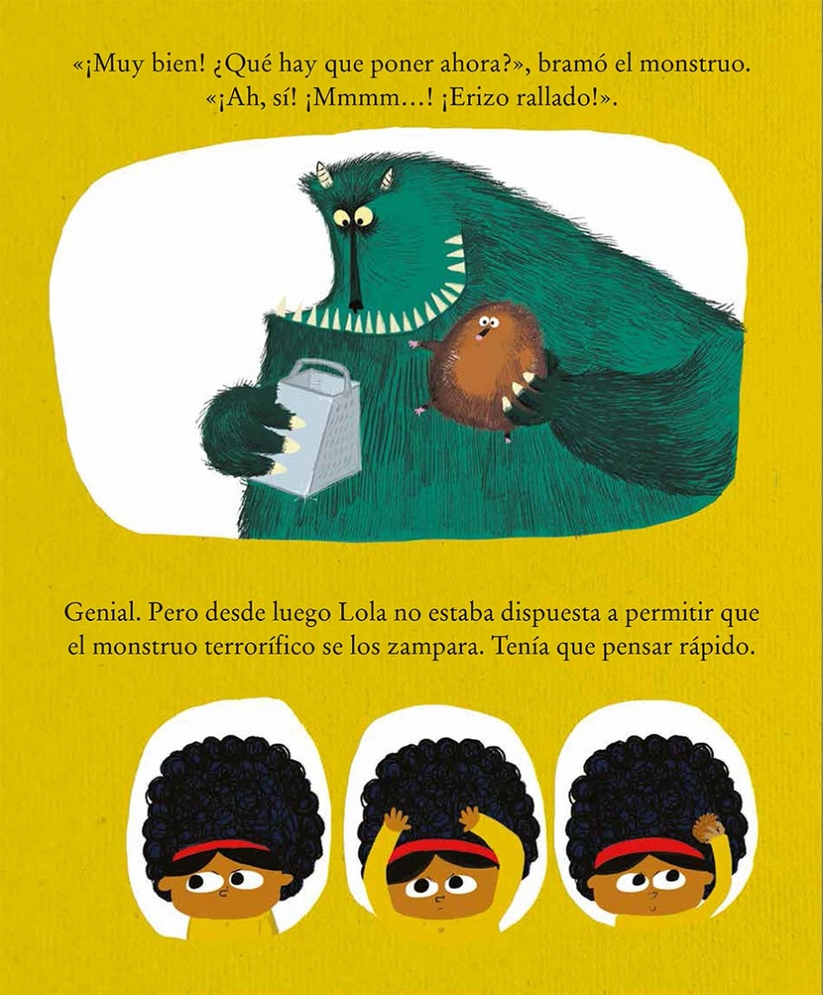 La deliciosa tarde que compartían Lola, su mascota y los animales del bosque se vio así interrumpida de mala manera. Cuando Lola leyó la receta de la sopa terrorífica que el monstruo quería preparar, tuvo que hacer uso de su inteligencia y su valor para disuadirlo y convencerlo de que los animalitos sabían mal y le iban a caer fatal a la tripa.