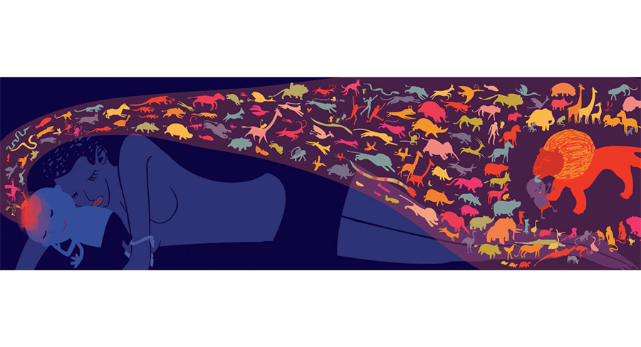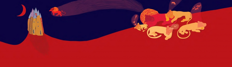 Finalmente, el león y su amiguito se despiden y cada uno se duerme junto a su familia, soñando con el otro.