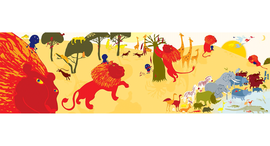 Las coloridas y expresivas imágenes narran sin palabras una historia entrañable entre el león y el pequeño, en la cual no faltan aventuras, como la pelea con otro león que los ataca, los paseos por la sabana llena de animales, frutos, lagunas, y el agresivo recibimiento de los aldeanos, que les arrojan lanzas, convencidos de que el animal hará daño al niño.