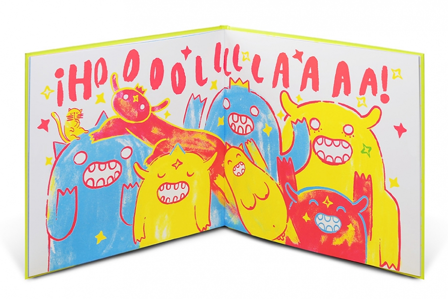Colores brillantes y trazos contundentes, más un texto dibujado en los mismos tonos, componen un álbum original, tierno y reparador.