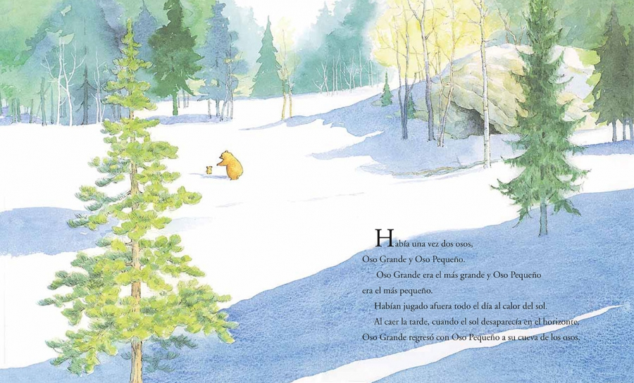 Oso Pequeño sale a explorar el bosque, ensaya los primeros pasos de su autonomía, se enfrenta a la oscuridad de la noche y al miedo… Pero Oso Grande está siempre a su lado para protegerlo, ayudarlo y darle seguridad.