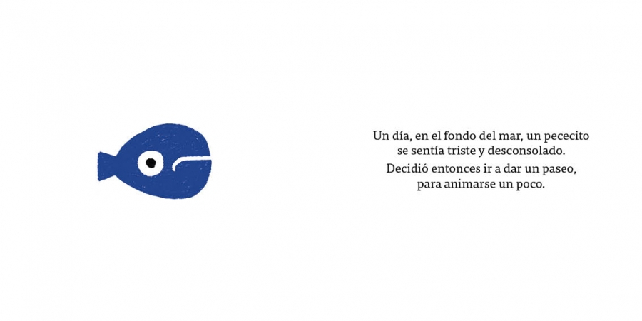 El pececito no entendía qué pasaba en ese mar de lágrimas; por qué las medusas, las sardinas, el calamar y todos los diferentes peces que se cruzaban en su camino estaban igual de deprimidos. La tortuga que, curiosamente, estaba boca arriba le explicó que nadie estaba triste. ¡Es que el pececito estaba del revés!