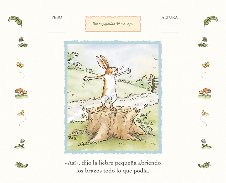 Un calendario con los recuerdos más bellos e importantes del primer año de tu bebé. Basado en el clásico álbum «Adivina cuánto te quiero».