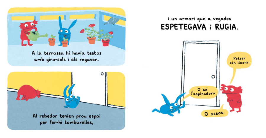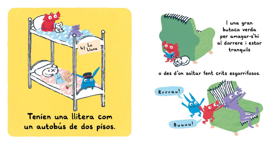 Aquest títol és un dels tres que componen aquesta divertida sèrie que convida al joc amb les il·lustracions alegres i plenes de color i la tipografia rodona i senzilla.