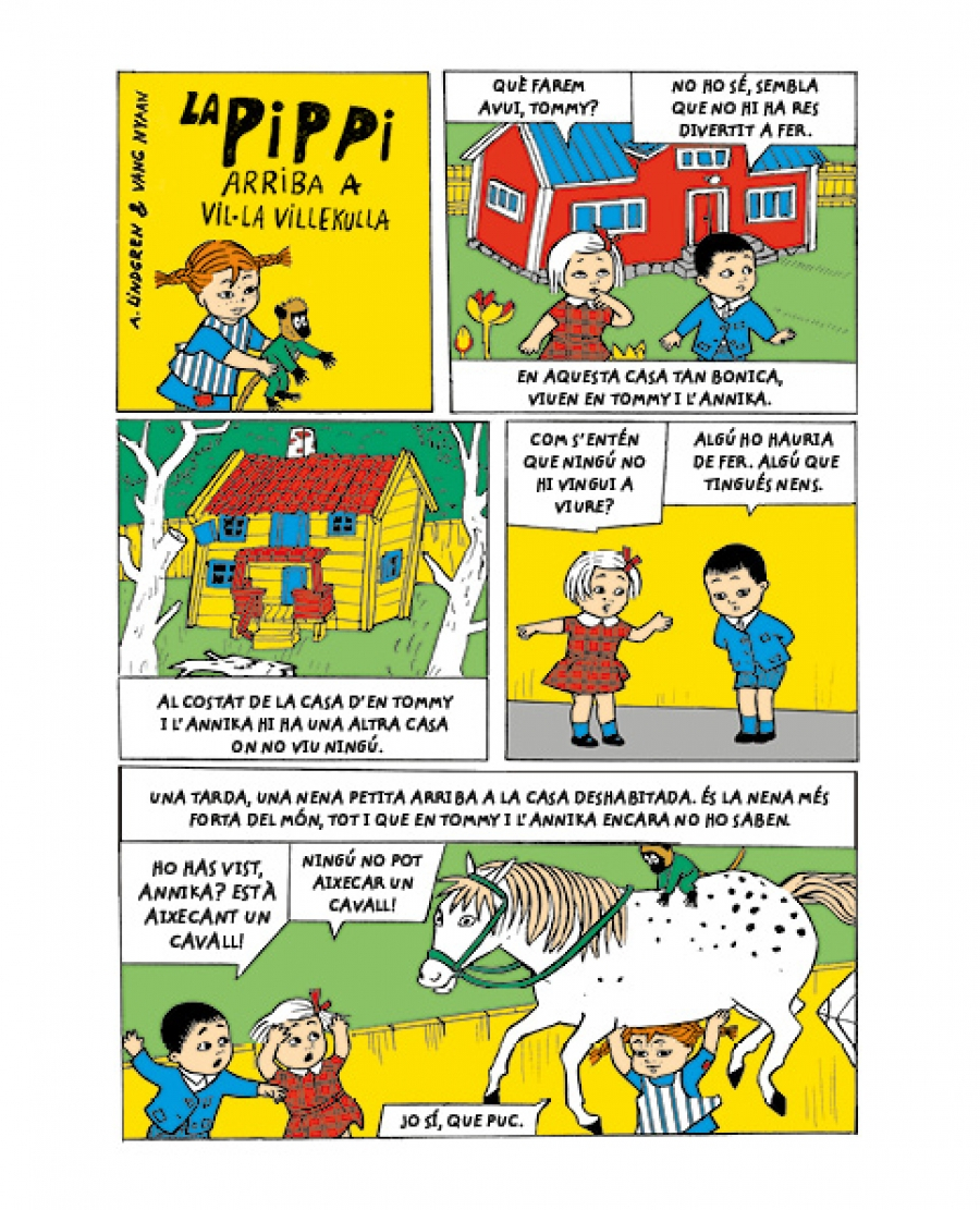 Aquest volum, en format còmic, és el primer d’una col·lecció que pretén acostar als primers lectors l’extraordinari personatge de la Pippi, la nena més forta del món.