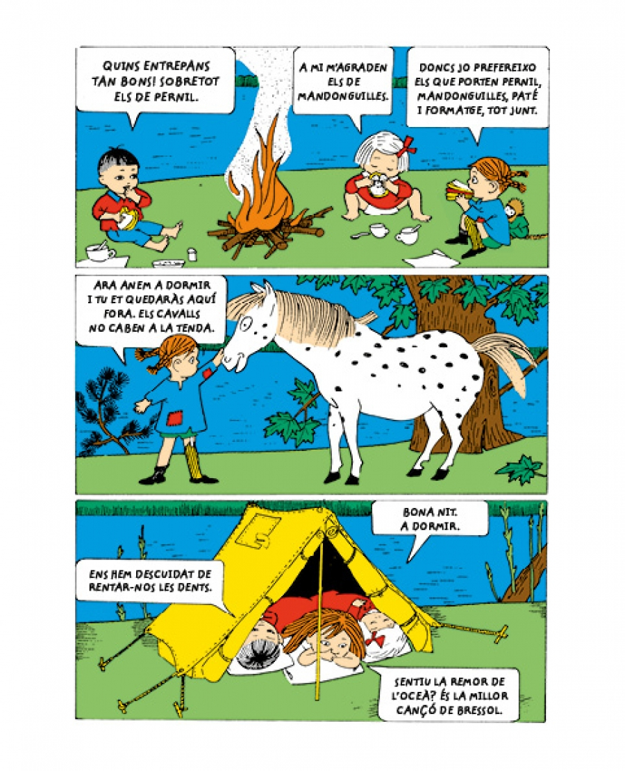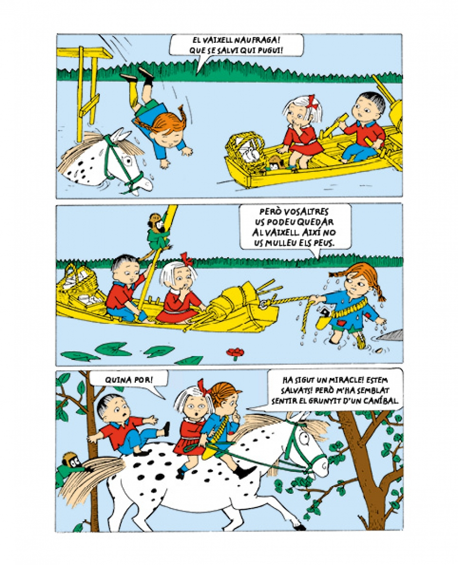 Aquest volum, en format còmic, és el tercer d’una col·lecció que pretén acostar als primers lectors l’extraordinari personatge de la Pippi, la nena més forta del món.