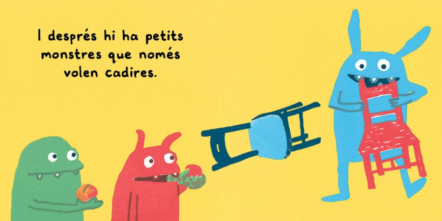 Tots els monstres tenen gana. Alguns monstres mengen préssecs, mandonguilles o pastís. Altres, però, prefereixen les cadires, les sabates o els tractors. Què serà el més saborós?