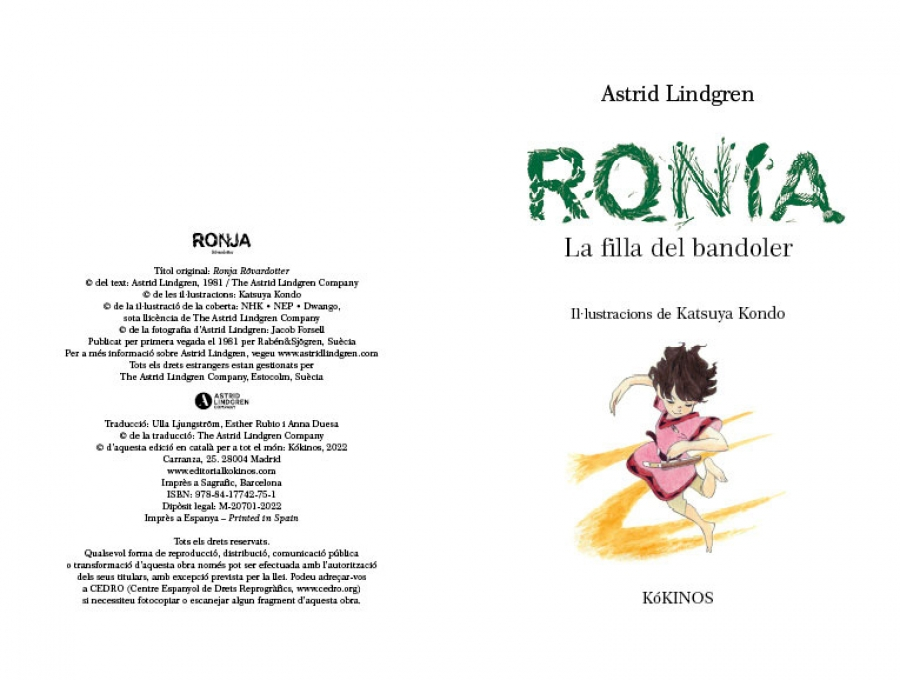 Astrid Lindgren té la capacitat de construir personatges segurs, autèntics, únics i independents que decideixen què han de fer amb les seves vides davant de situacions difícils. Els seus personatges queden fora dels estereotips masculins i femenins, les seves històries les protagonitzen tant nens com nenes, amb les mateixes condicions. La Ronia aprèn de la vida salvatge les lliçons necessàries per poder sobreviure.