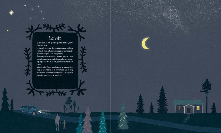 A la nit hi ha foscor, però també hi ha una llum màgica que habita en el misteriós bosc, al fons del mar i a les ciutats adormides, i en tots aquests llocs descobrirem tot el que brilla.