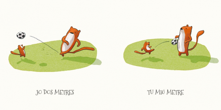 Dos animalons, un de gran i un de petit, units per aquest inefable vincle de pares i fills, juguen a una cosa molt original. Pàgina rere pàgina se succeeixen escenes diferents, totes divertides, en què s’alternen, amb complicitat, el paper, les característiques, les manies, les rutines de cadascú.