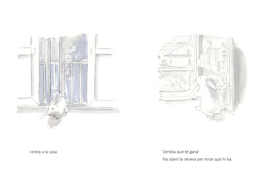 Els amos d’una conilleta se’n van a passar un dia fora i la deixen al balcó. Ella entra sigil·losament dins la casa i... Comença l’aventura! S’asseu a la taula a menjar a taula, mira un pel·lícula de dibuixos animats, es maquilla davant del mirall, es disfressa amb un vestit molt bonic... fins que al final s’adorm. L’endemà al matí, torna al balcó, però deixa algunes pistes de la seva aventura!