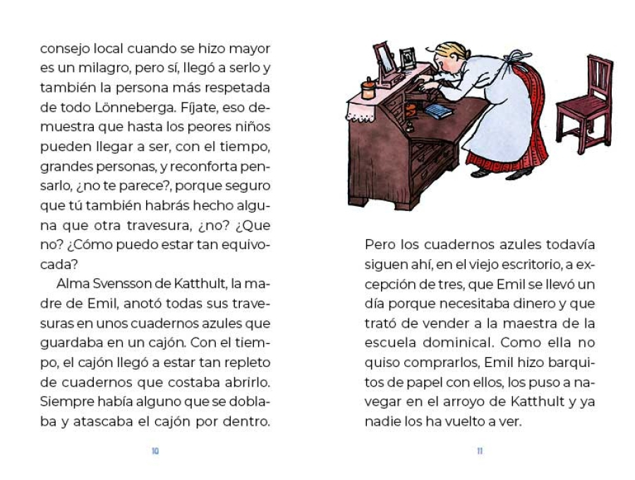 Todos queremos un mundo mejor, vivir en armonía y llegar a ser la mejor posibilidad de nosotros mismos. Pero ¿cómo hacerlo y por dónde empezar? Astrid Lindgren estaba convencida de que hay que empezar desde cero. Desde la infancia. Las niñas y los niños serán más felices y más inteligentes si viven como Emil, el personaje de Astrid: jugando. Como la mayoría de los niños, Emil aprende a través de lo lúdico: a veces sus travesuras crean problemas y, resolverlos con inteligencia y aprender que las cosas no siempre salen como se planean, forma parte de la aventura de crecer.