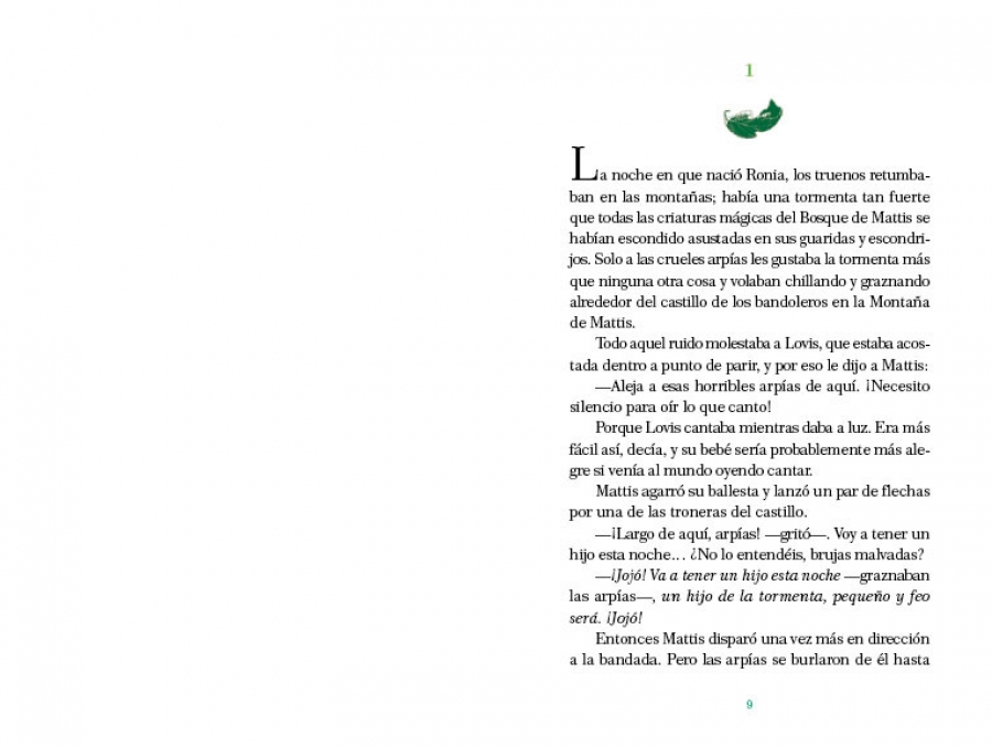 La noche en que nació Ronia, los truenos retumbaron en las montañas y un rayo partió el castillo de los ladrones en dos. Así comienza la historia de Ronia, en una noche tan extraordinaria como lo será su vida.