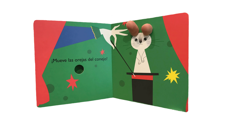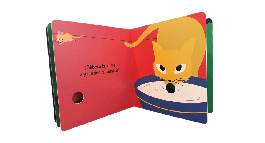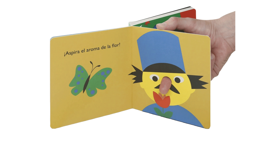 Encuadernación: libro con páginas de cartón, troqueles, relieves y texturas