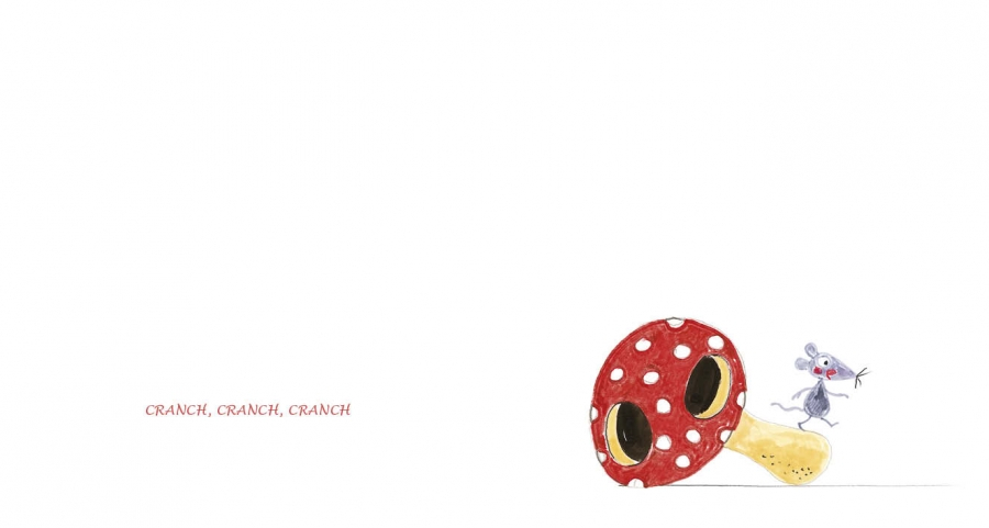 Un hambriento y cantarín ratoncito gris da unos mordiscos a una seta, a un trozo de queso y a un rabanito. Hasta que, buscando más comida, se mete en la boca de un gato. Cuando descubre que se equivocó y decide escapar, se topa allí dentro con alguien...