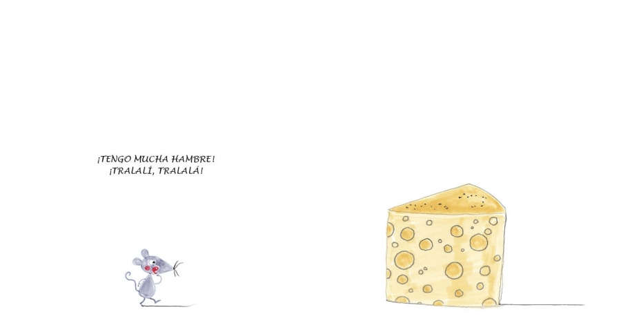 En esta ocasión el autor cambia un poco su línea habitual de relato acumulativo, en el que los animalitos van llegando a la escena uno por uno (cómo ocurre en «La avellana», «El secreto» o «La broma»). Sin embargo, sí van desfilando diferentes cosas comestibles, que tanto el ratoncito como su amiga, ambos insaciables, degustarán con entusiasmo.