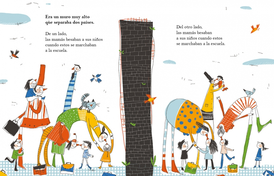 El niño rascó hasta que por el hueco pudieron pasar todos los niños y, más tarde, los reticentes adultos. Los pobladores de ambos países pudieron mezclarse y comprobar que todos eran muy parecidos. Y así vivieron en armonía, sin etiquetas que los clasificasen en buenos y malos y sin barreras absurdas que los separasen.