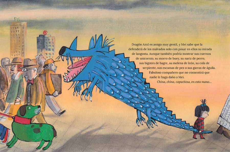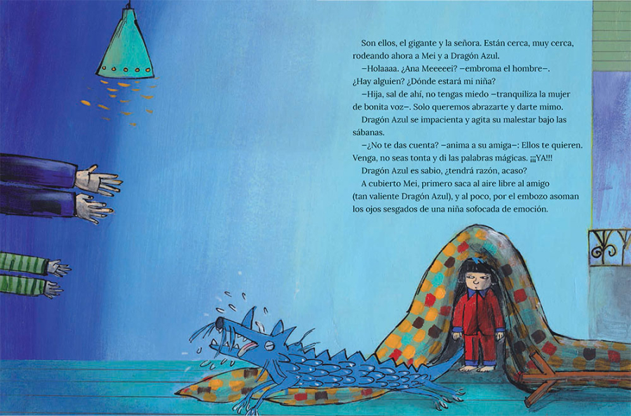 Un «gigante» ha ido a China a buscar a Mei. La ha traído a casa y le ha regalado un enorme Dragón Azul. Mei no se fía un pelo de este gigante ni de su mujer. Menos mal que tiene al Dragón Azul para protegerla, acompañarla y ayudarla a adaptarse a su nuevo hogar.