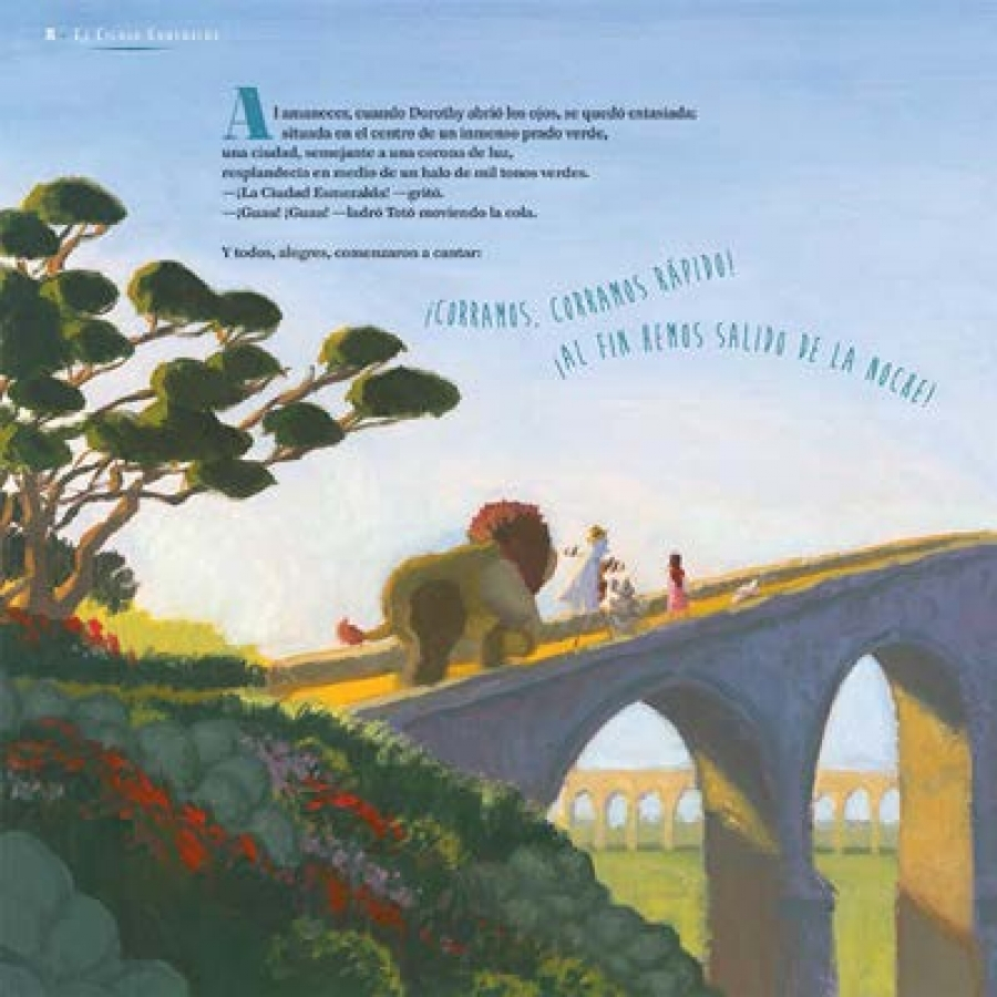 En su casa de Kansas, Dorothy sueña con un país maravilloso, más allá del arco iris… Y, de repente, un terrible huracán la lleva en volandas al sorprendente País de Oz. Allí se encuentra con un espantapájaros, un hombre de hojalata y un león. Escoltada por sus tres nuevos amigos, Dorothy parte en busca del gran Mago de Oz… La música de la banda sonora original de la película de Victor Fleming (1939) va acompañando todo el relato del cuento. Se incluyen íntegramente, al final del CD, las más famosas canciones del film. En las últimas páginas el álbum se presenta una muestra de los bocetos del ilustrador, así como las letras de las canciones en inglés original y su traducción al español.