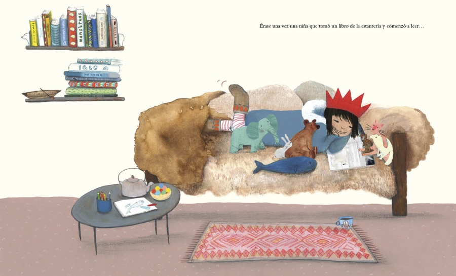 A los osos polares les encanta dormir en cualquier posición y donde les pille. Así que la pequeña lectora también decidió acurrucarse en un rincón confortable, con este, su libro favorito y soñar que dormía abrazada a sus amigos, los osos polares...