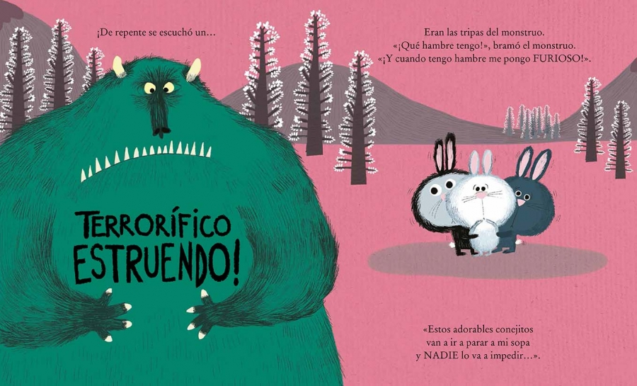 Lola y su gato Bola salieron a pasear por el bosque. Saludaron al zorro, al erizo, a los ratones y a los conejitos hasta que apareció un monstruo terrorífico dispuesto a cocinar una sopa con todos ellos.
