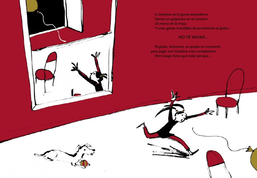 A Catalina no le gustan las despedidas. Siente algo raro en el corazón y en la tripa cada vez que se va el invierno, se vuela su globo, pierde un diente o su papá apaga la luz por la noche, pero comprenderá que algunas cosas deben marcharse para que otras igual de divertidas y reconfortantes puedan llegar. Esa angustia que la niña siente cada vez que tiene que separarse de algo o de alguien, se calmará al comprobar que los adioses son necesarios para dejar lugar a otros momentos o sentimientos tan naturales, hermosos o importantes como los anteriores.