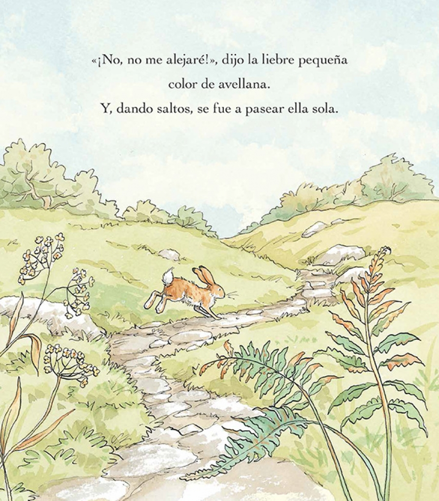 La pequeña liebre color de avellana reanudó su paseo y, muy pronto, llegó al pie de la montaña nublada. ¡Vaya sorpresa la esperaba allí, entre los brezos!