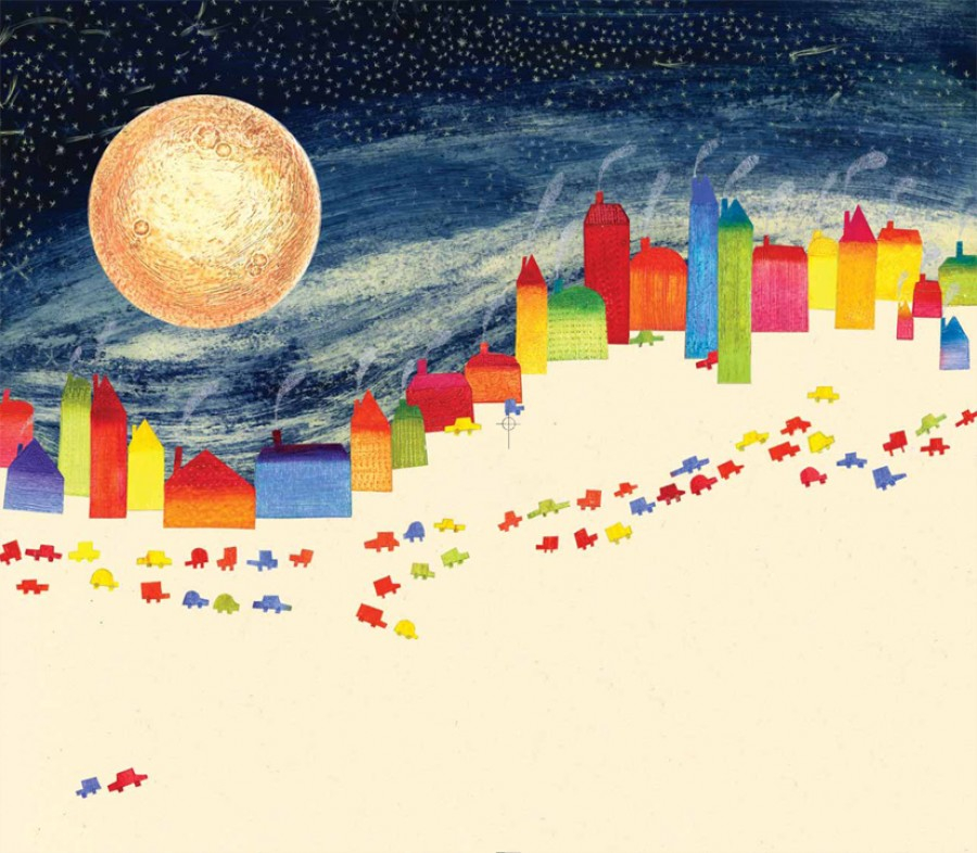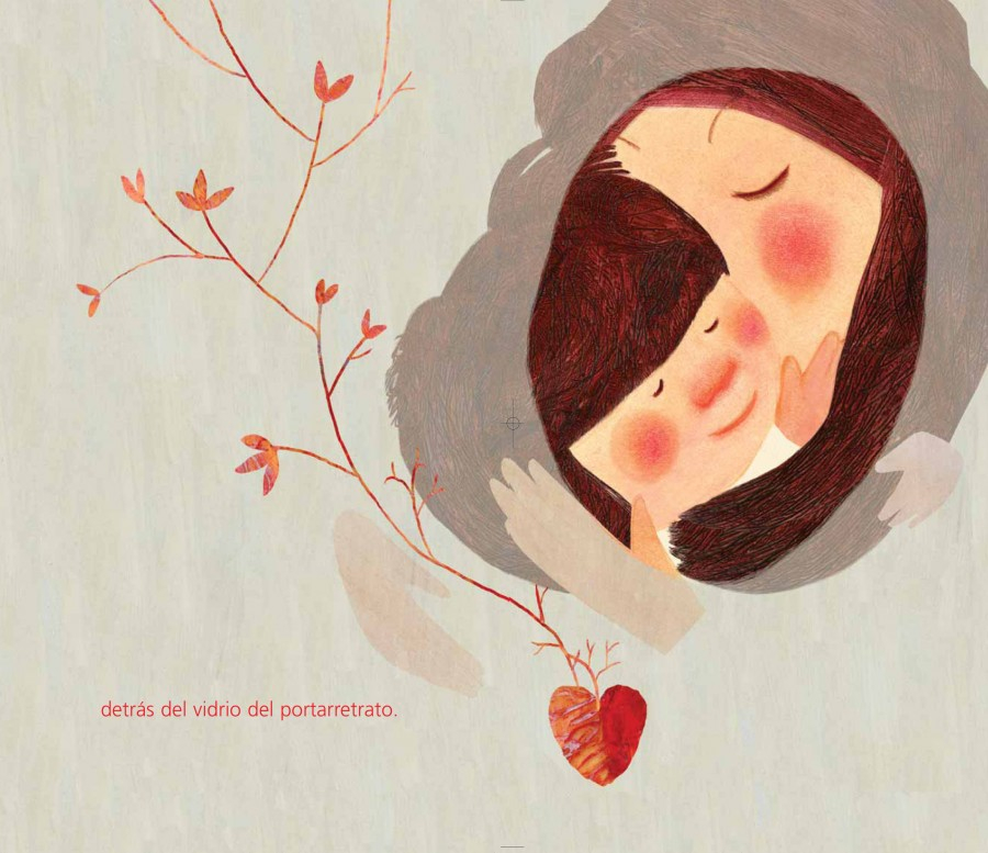 Ilustraciones impactantes y sugerentes envuelven este texto mínimo. Pocas palabras como dardos al corazón, que hablan de una tarde, una niña, un juego de su dedo en el vidrio empañado y una mamá esperada que llega para darle justo lo que la pequeña necesita.