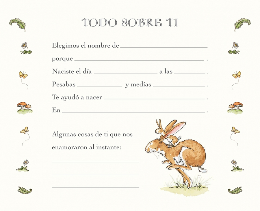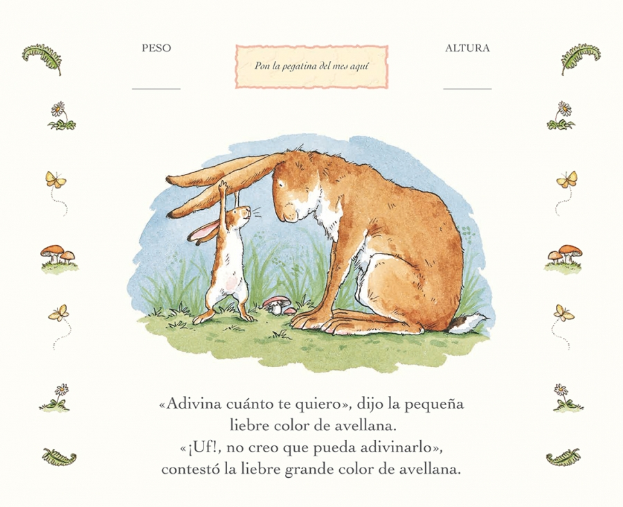 Un calendario con los recuerdos más bellos e importantes del primer año de tu bebé. Basado en el clásico álbum «Adivina cuánto te quiero».