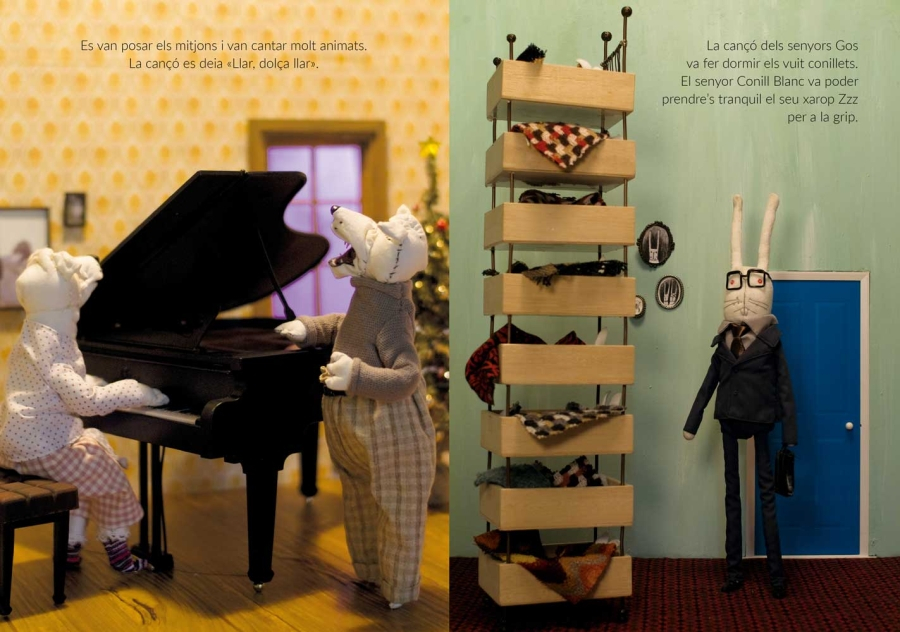 Així van desfilant diferents habitants: la senyora Ratolí, el senyor Guineu, el senyor Cabra Blanca amb el gat negre de la cafeteria Safata Platejada, el senyor Conill Blanc... Interactuen uns amb altres, passen coses inesperades, es molesten a vegades, però al final són molt solidaris.