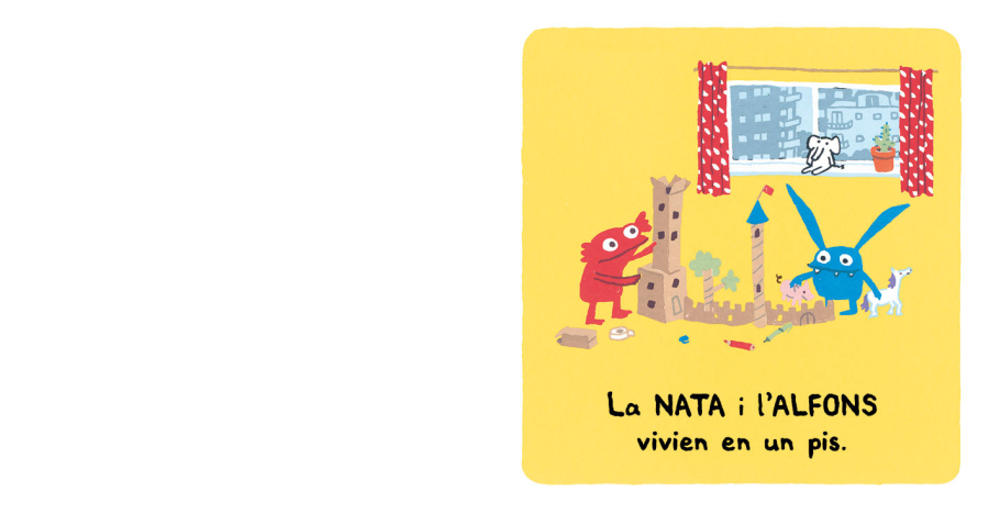 L'Alfons i la Nata viuen a un pis de la setena planta. Tenen una llitera tan gran com un autobús, una butaca per amagar-se, un balcó amb geranis, espai per fer tombarelles, i molt més... Tots dos tenen força lloc per jugar.