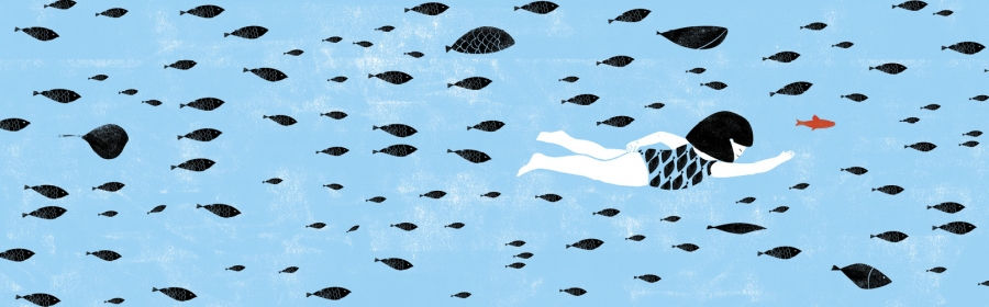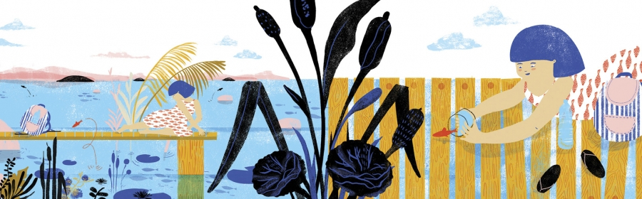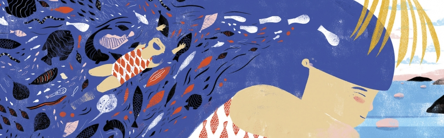 Una nena mira el mar des del moll i somia que neda al costat dels peixos. Tot d’una, un peixet salta fora de l’aigua, ella se l’endú a casa i fabrica un curiós aquari per surar al seu aire amb el seu nou amic. Fins que s’adona que el peix no se sent tan feliç com ella. El peixet s’escapa de la petita piscina que la nena ha disposat per a tots dos i es capbussa en un bassal d’aigua que ha format la mànega. La nena ho observa desconcertada, fins que entén el que passa. Corre fins al moll amb el peixet, s’acomiada d’ell i li retorna la llibertat.