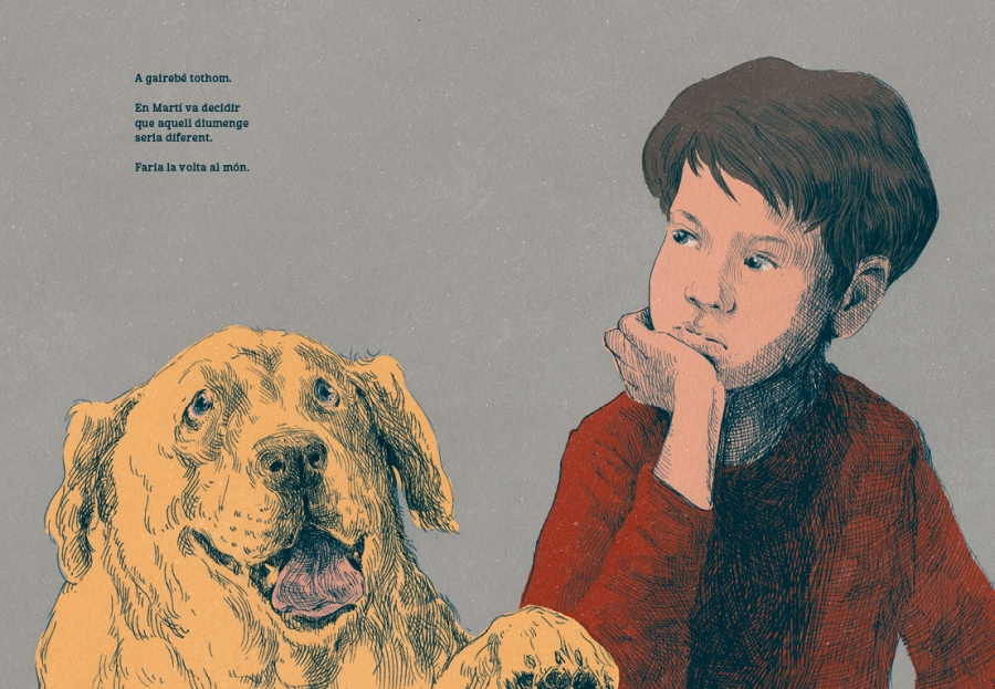 Els diumenges tot transcorre de la mateixa manera a la família d’en Martí. La rutina tranquil·la dels seus pares i avis és sempre igual i previsible. Però aquest diumenge en Martí vol fer una cosa diferent! Ni més ni menys que la volta al món! El seu fidel gos, en Fubà, serà el seu únic company d’expedició. Junts creuaran deserts abrusadors i paratges gelats, s’enfrontaran a perills, a monstres i pirates. Per al nen, aquell diumenge avorrit es transforma en una diversió inesperada.