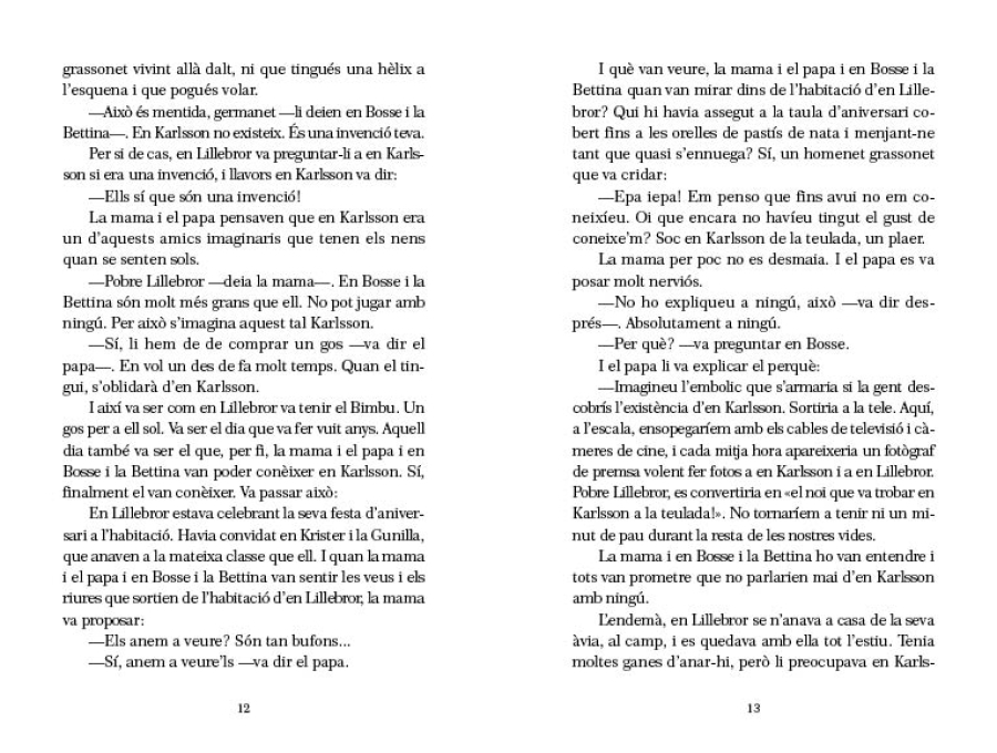 —Tinc ganes de divertir-me… Si no, amb mi no hi comptis —diu en Karlsson cada vegada que entra volant per la finestra de l’habitació d’en Lillebror, sempre preparat per a noves trapelleries.