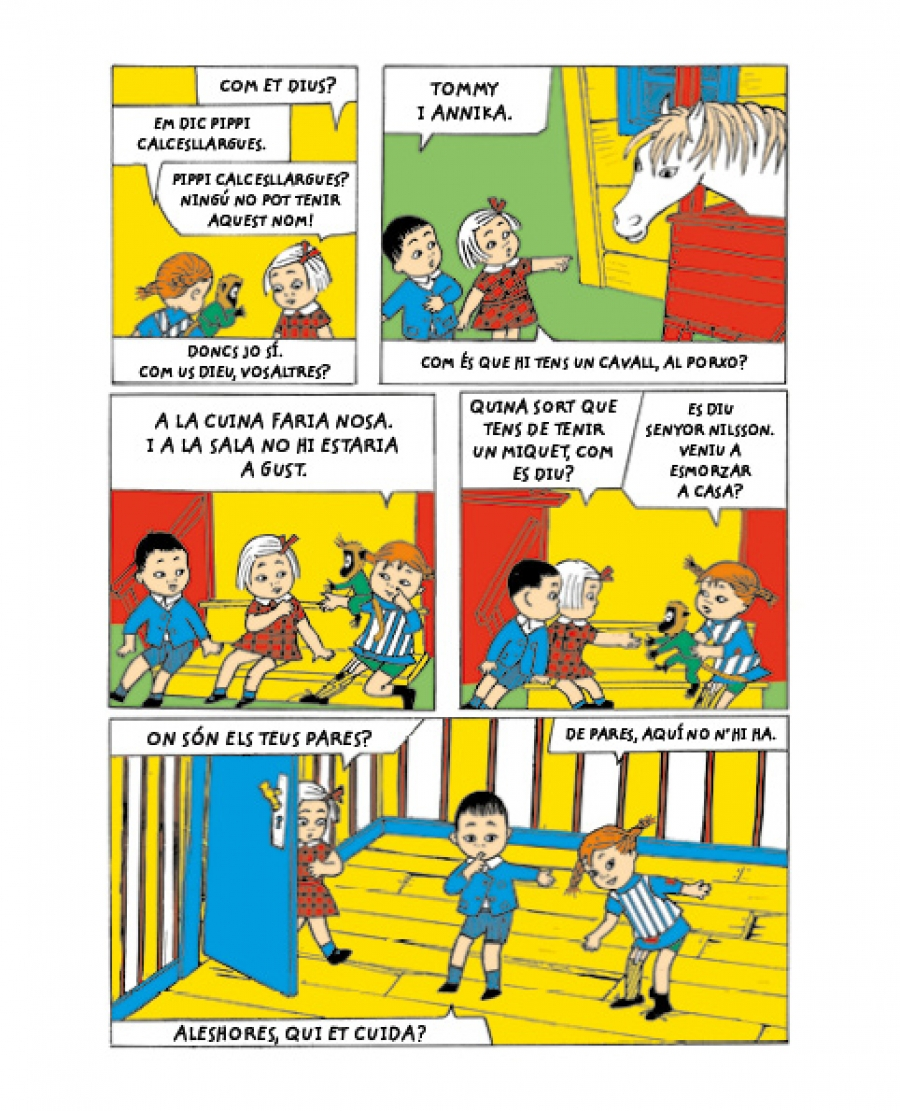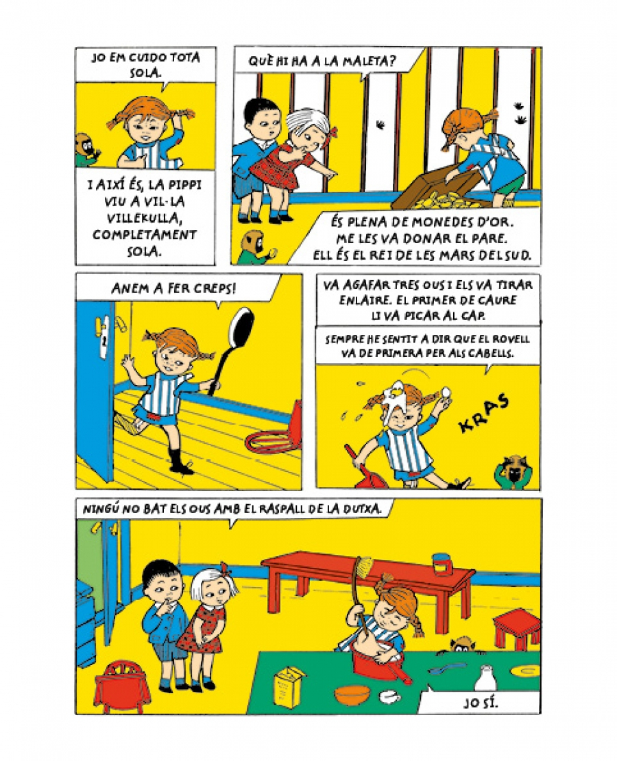 Aquest volum, en format còmic, és el primer d’una col·lecció que pretén acostar als primers lectors l’extraordinari personatge de la Pippi, la nena més forta del món.