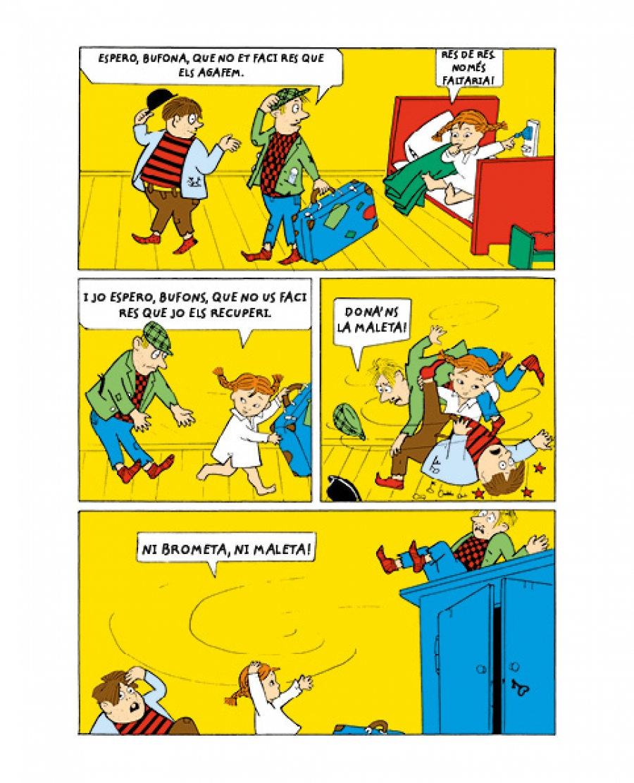 Aquest volum, en format còmic, és el segon d’una col·lecció que pretén acostar als primers lectors l’extraordinari personatge de la Pippi, la nena més forta del món.