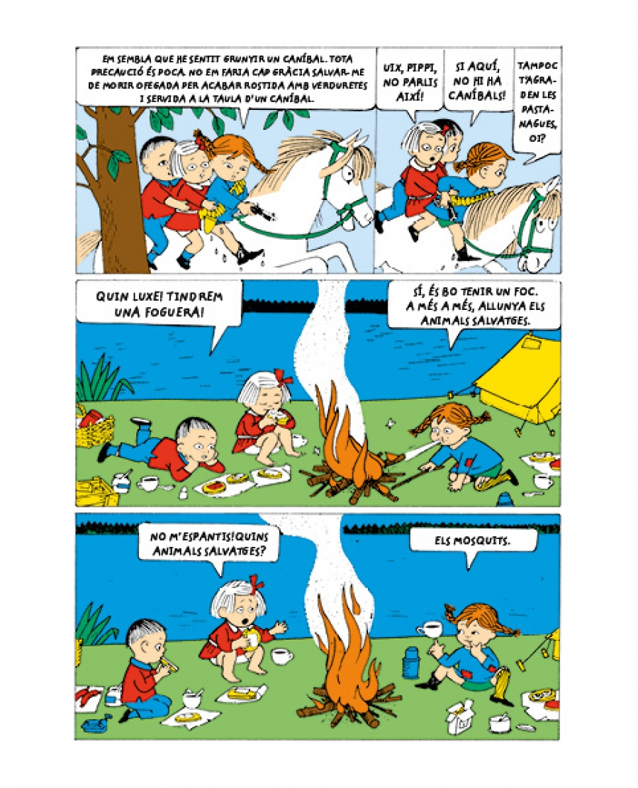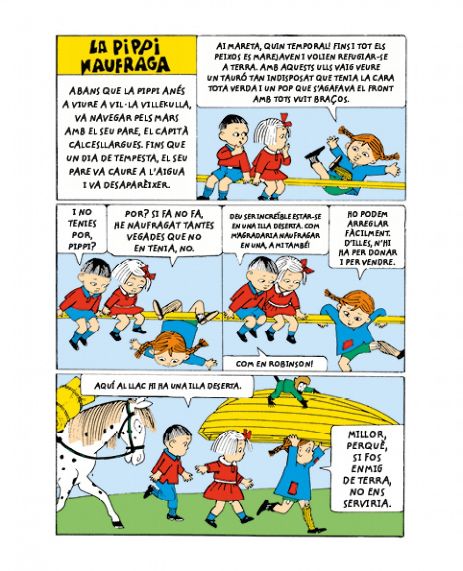 Aquest volum, en format còmic, és el tercer d’una col·lecció que pretén acostar als primers lectors l’extraordinari personatge de la Pippi, la nena més forta del món.