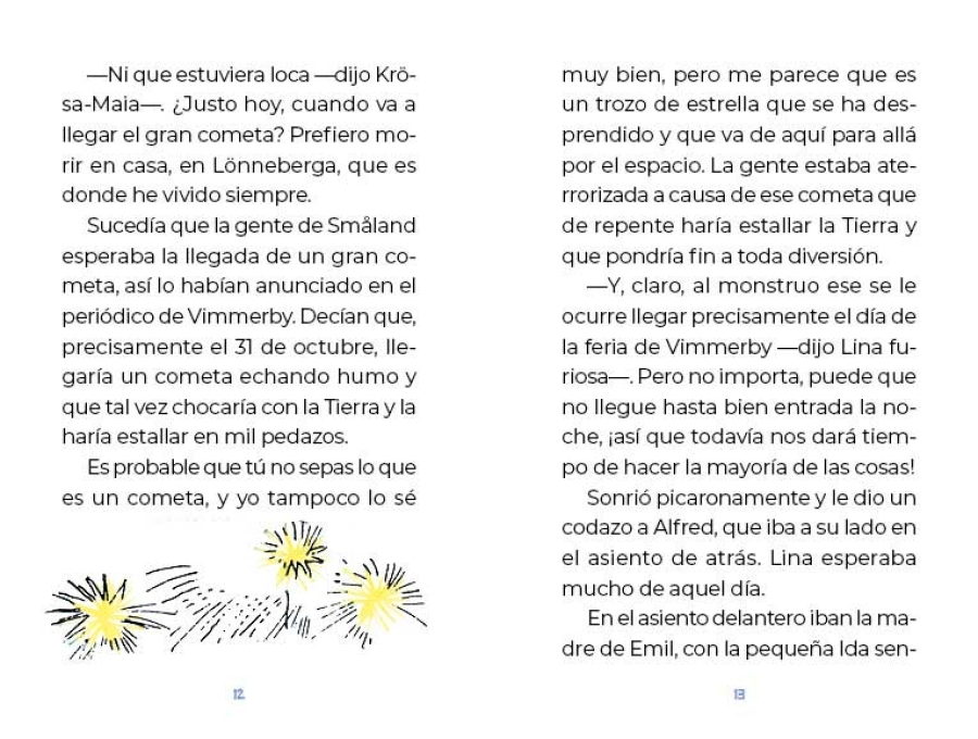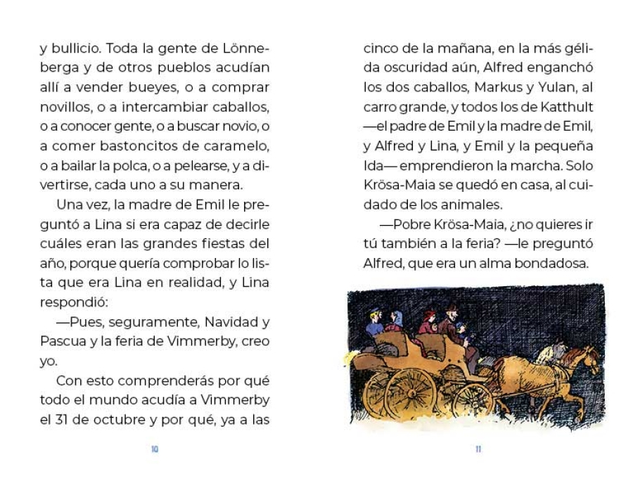 Seguro que te divertirá saber cómo Emil consiguió un caballo el día de feria en Vimmerby y cómo aterrorizó sin querer a la señora Petrell y a toda la ciudad. Y también quizá te gustaría saber lo que pasó el día siguiente a Navidad, cuando organizó un banquete para todos los ancianos de la casa de los pobres.