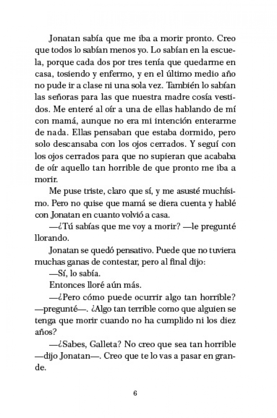 El pequeño Karl de nueve años está muy enfermo y sabe que va a morir muy pronto. Su hermano mayor Jonatan, le habla entonces de Nanguiyalá, un país adonde uno llega después de la muerte…