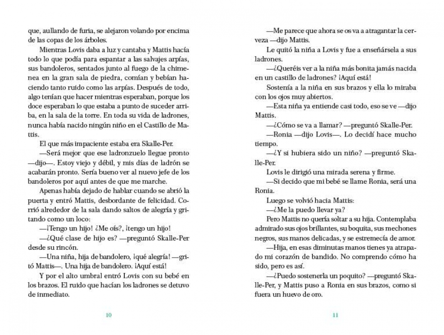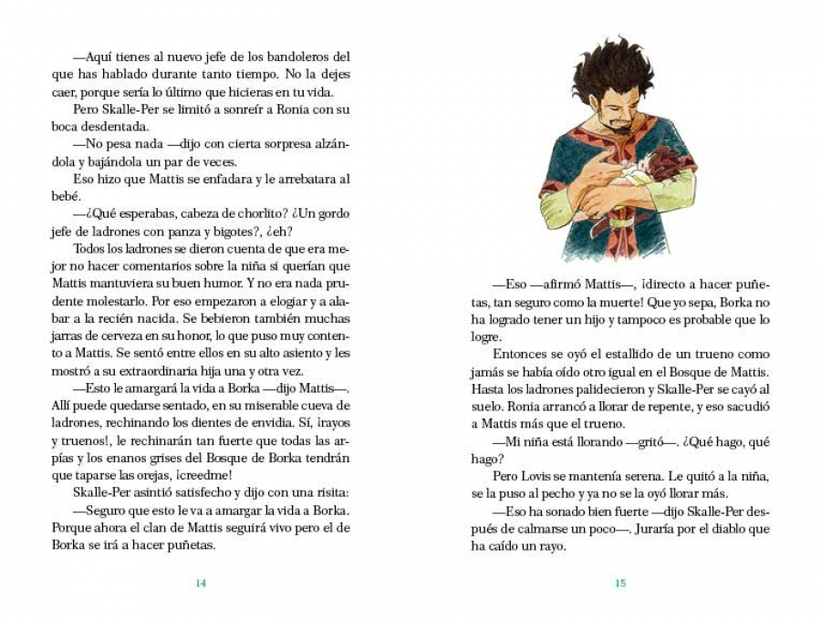 La noche en que nació Ronia, los truenos retumbaron en las montañas y un rayo partió el castillo de los ladrones en dos. Así comienza la historia de Ronia, en una noche tan extraordinaria como lo será su vida.